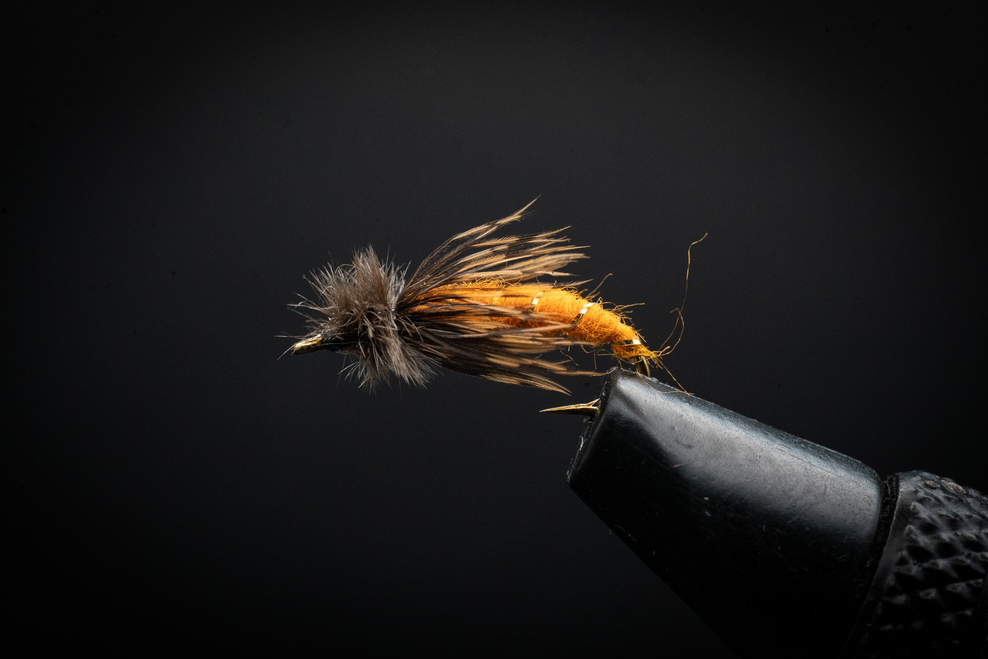 Designed to imitate the October Caddis (Dicosmoecus)—a large, orange-bodied caddisfly found in the Western U.S. during fall. This pattern mimics the larval or pupal stage, often tied with soft hackle or dubbed bodies in orange to rusty tones.