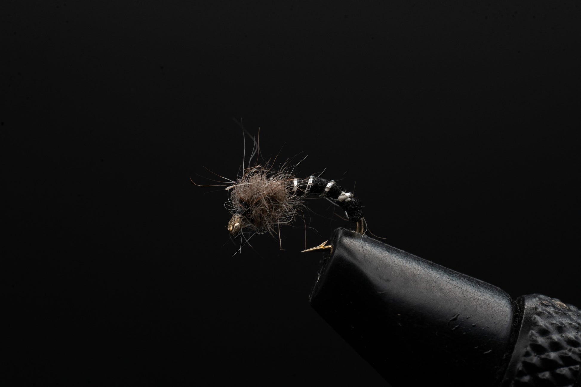 Imitates a chironomid larva or pupa—especially common in lakes and slow-moving rivers. Black is the most widespread color for chironomids.