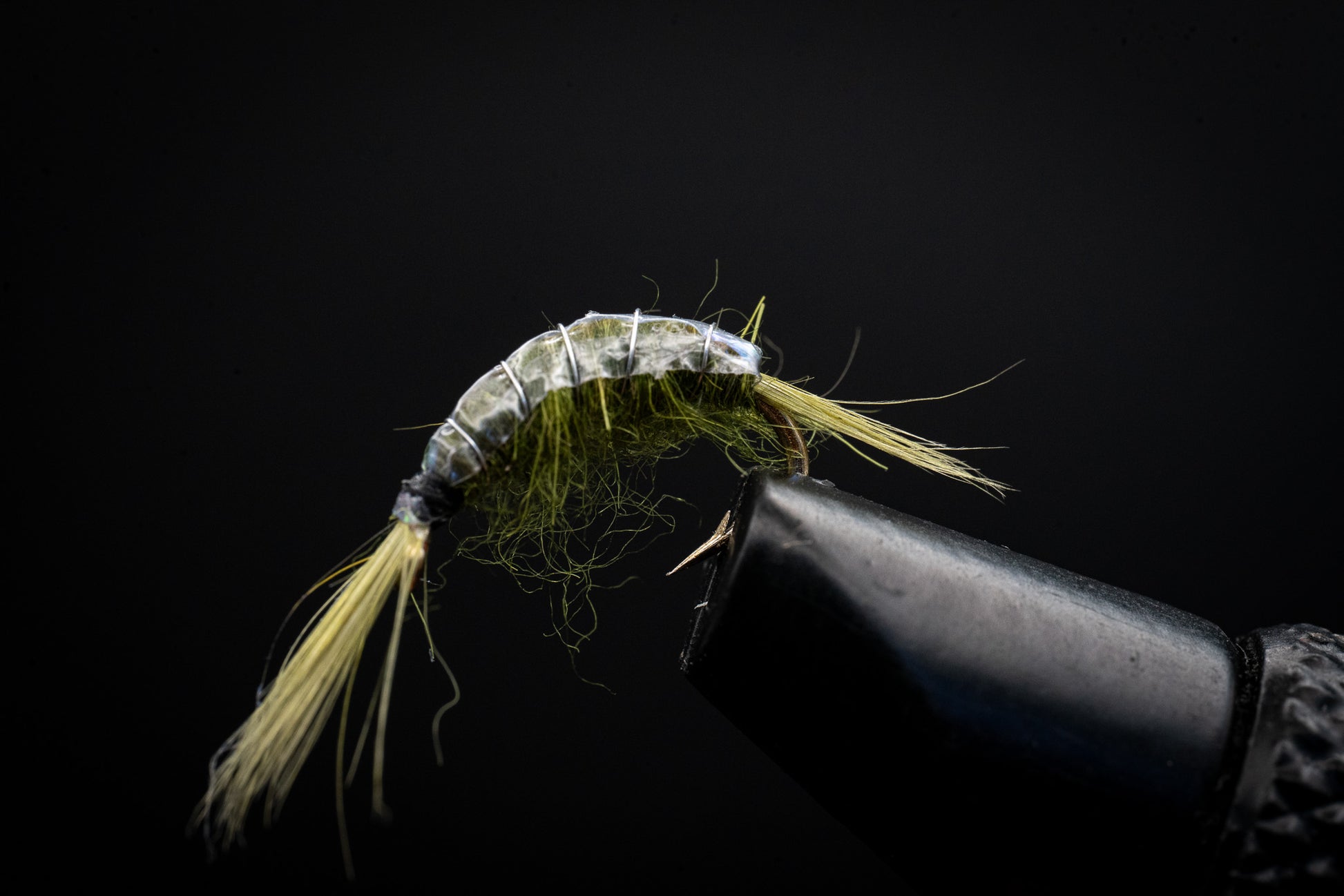 Mimics olive-hued scuds common in spring creeks and slow rivers.