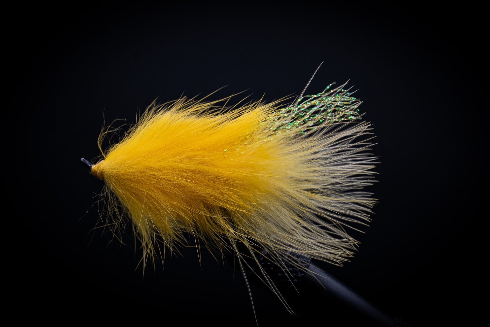 Resembles a flashy baitfish or bright attractor pattern with added flash fibers for extra visibility.